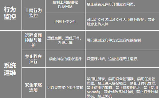 • 精确的桌面管理与上网行为监控